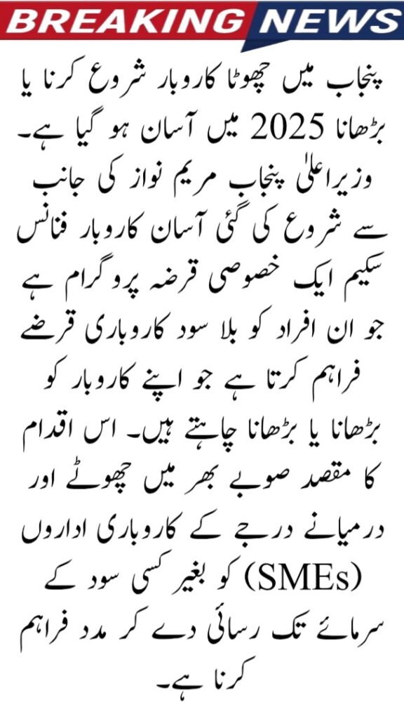 Starting or growing a small business in Punjab has become easier in 2025. The Asaan Karobar Finance Scheme launched by Chief Minister Punjab Maryam Nawaz is a special loan program offering interest-free business loans to individuals who want to build or expand their businesses. This initiative aims to support small and medium enterprises (SMEs) across the province by giving them access to capital—without paying any interest.
