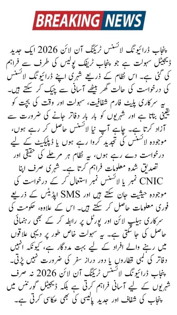 The Punjab Driving License Tracking Online 2026 system is a digital initiative by Punjab Traffic Police that allows citizens to check the status of their driving license applications from home. This official government service ensures transparency, convenience, and timely updates, saving both time and travel costs. Whether applying for a new license, renewing, or requesting a duplicate, this portal keeps applicants informed at every stage, making it a cornerstone of modern digital governance in Punjab.