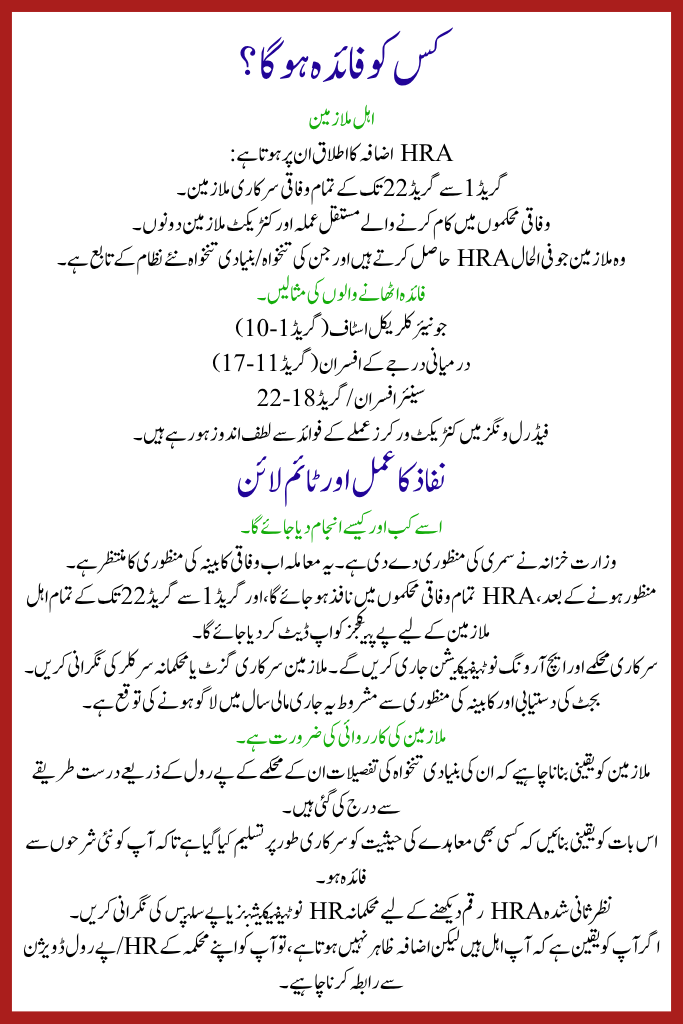 What Is the Pakistan Govt Increases House Rent Allowance by 85% HRA Increase?