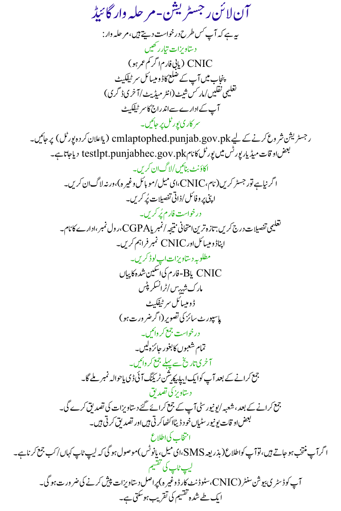 | Method of Application | Online via official portal: e.g., cmlaptophed.punjab.gov.pk |